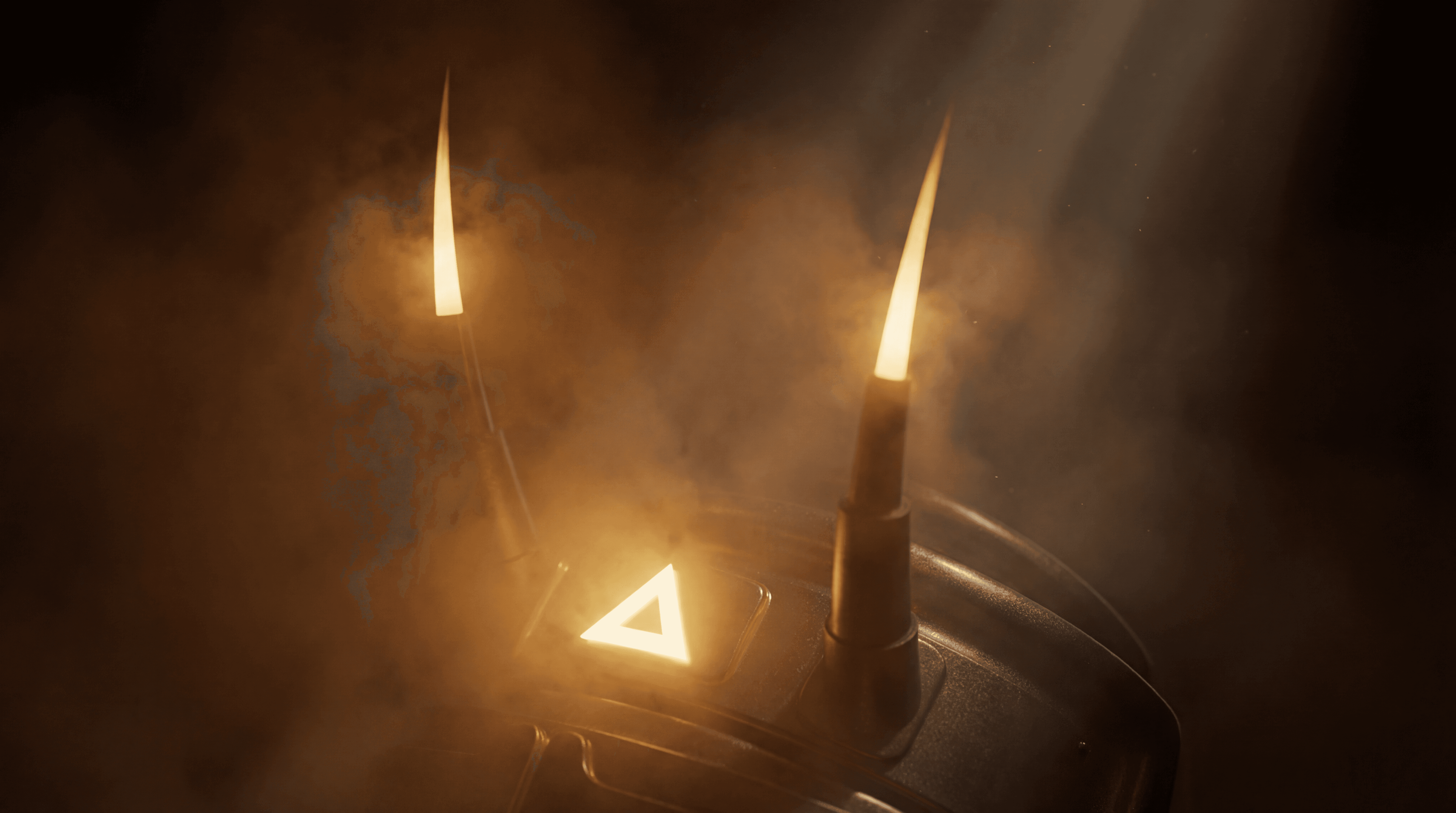 The lighting DNA for the entire collection came from an unlikely source: episode seven of Guillermo del Toro's Cabinet of Curiosities — The Viewing, directed by Panos Cosmatos. Not Blade Runner cyberpunk, not Ghost in the Shell — something else. A specific quality to the light: the way illumination disperses through haze, how highlights bloom and dissolve into atmospheric fog. I showed Kolya screenshots first. He didn't quite get it. So I told him to just watch the episode. He did. Came back and said, 'Yeah, I understand now.' From that point forward, the direction was locked.